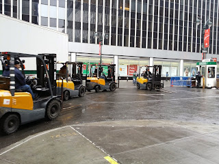 We arrive at the Garden to the loading area and are greeted by a stream of Folk lifts trucks, all busy taking Mr.Stewart's goodies up the spiral ramp..